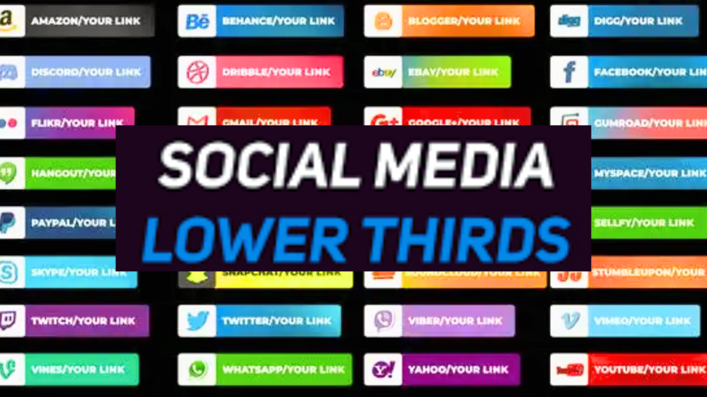 - Social Media Lower Thirds consist of animated social media icons with your @name on it.